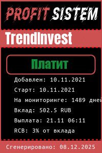 TrendInvest - Описание Выплаты Статистика проекта | Хайп мониторинг ProfitSistem | Блог о инвестициях и Хайп проектах | HYIP monitoring