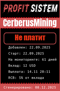 CerberusMining - Описание Выплаты Статистика проекта | Хайп мониторинг ProfitSistem | Блог о инвестициях и Хайп проектах | HYIP monitoring