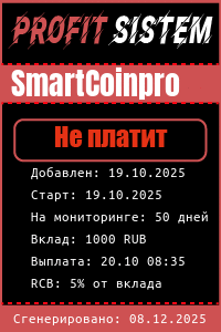 SmartCoinpro - Описание Выплаты Статистика проекта | Хайп мониторинг ProfitSistem | Блог о инвестициях и Хайп проектах | HYIP monitoring