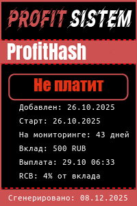 ProfitHash - Описание Выплаты Статистика проекта | Хайп мониторинг ProfitSistem | Блог о инвестициях и Хайп проектах | HYIP monitoring