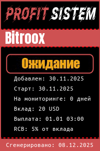 Bitroox - РефБек-RCB | Хайп мониторинг ProfitSistem | Блог о инвестициях и Хайп проектах | HYIP monitoring